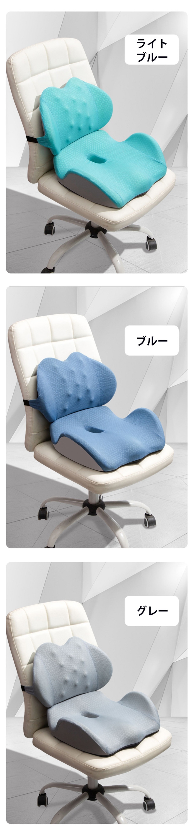- 多様な椅子に取り付け可能。いつでもどこでも姿勢ケアを!