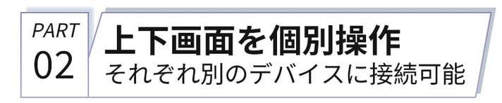 - 上下2画面タッチ対応。別々の機器でも独立して快適に操作可能。