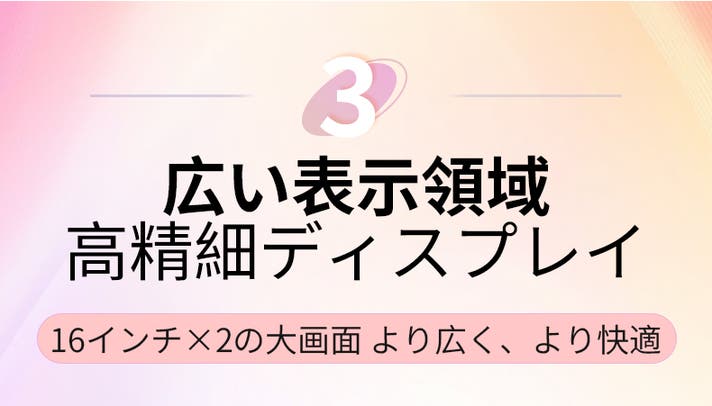 16インチのデュアル大画面に、IPSパネルの178°広視野角を搭載。