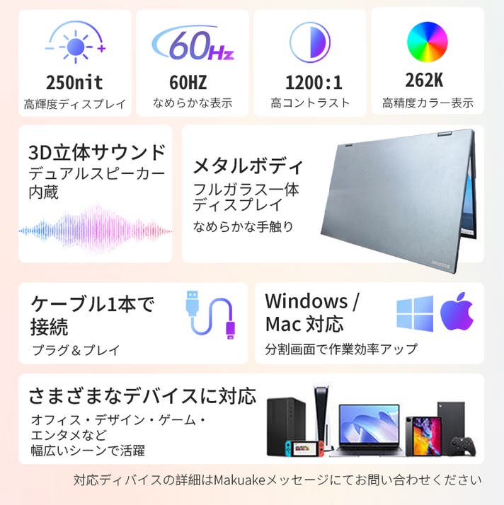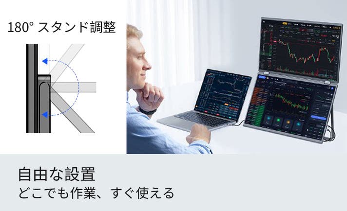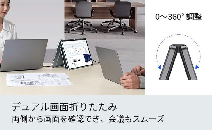 デスクでも外出先でも活躍する便利なポータブルディスプレイです。