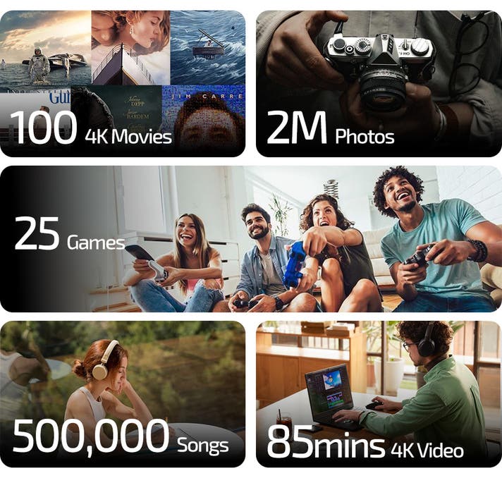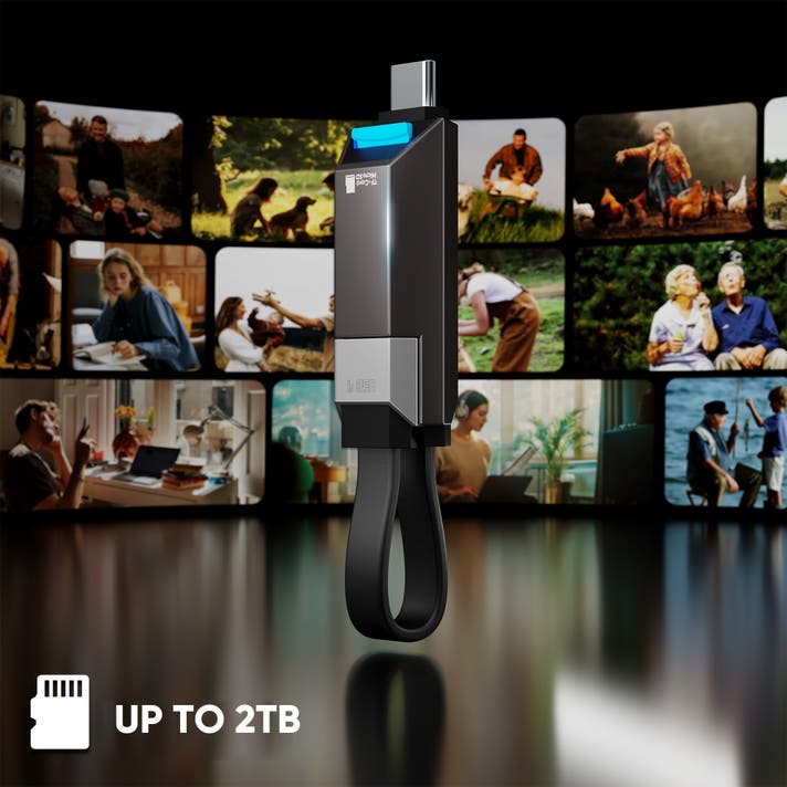 Uケーブルは最大2TBのMicro SDカードとTFカードに対応しており、高解像度の写真、4K動画、大容量ファイルなど、すぐに容量を追加できます。Wi-Fiもサブスクリプションも不要。デバイス間でシームレスにアクセスできます。