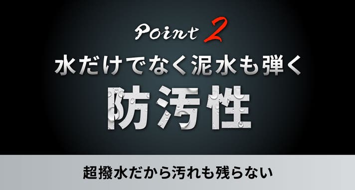 水だけでなく泥や汚れも付着しにくくなります。