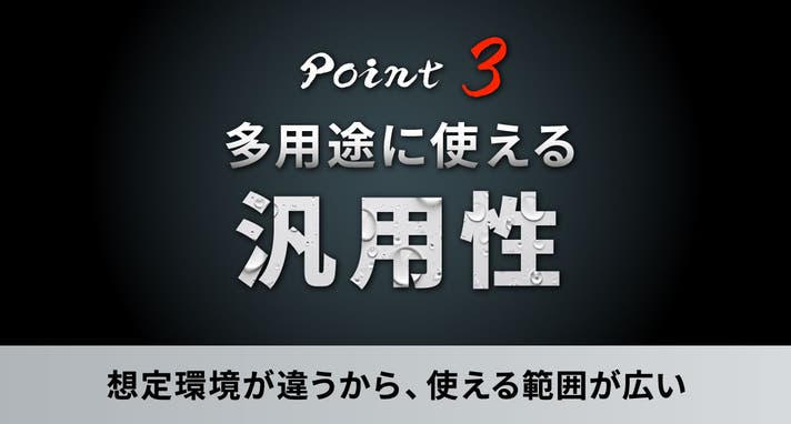 その結果として、日常からアウトドア、スポーツ、業務用途まで、幅広いシーンで使える汎用性を実現しました。