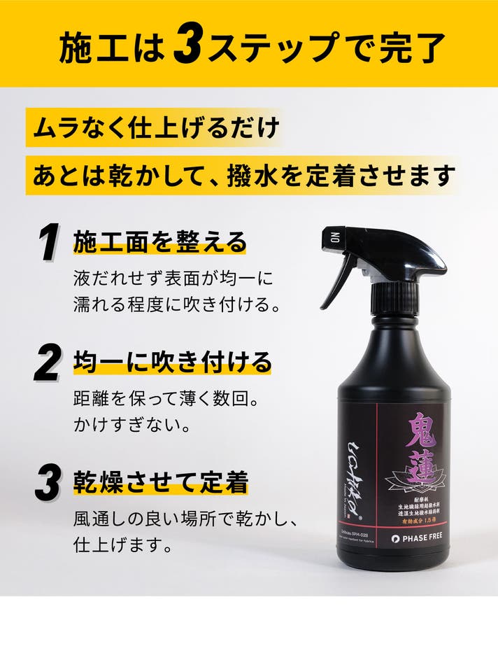 【超早割】約26%OFF 耐摩耗生地専用超撥水剤 鬼蓮3本セット
