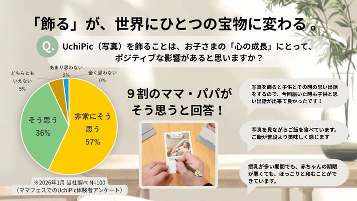 理論だけではありません。実際にUchiPicを体験したママ・パパの92%が、お子さまの心の成長にポジティブな影響があると感じています。