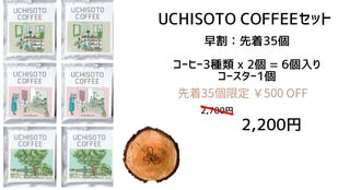 ①【500円割引】UCHISOTO COFFEEセット|早割:先着35個|コーヒー6個、コースター1個|2,200円