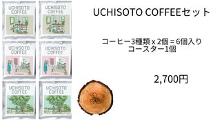②UCHISOTO COFFEEセット|一般販売予定価格|コーヒー6個、コースター1個|2,700円