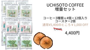 ※UCHISOTO COFFEEセットの2つ分の内容量(5,400円相当)で、値段は1,000円割引