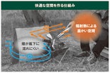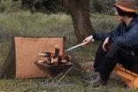 コルクには断熱性があるので、焚火からの輻射熱を反射し、温かい空間を作ります。さらに、風上にウィンドスクリーンを立てることで、焚火の煙が風下に流れてくることを抑えるため、素敵な焚火の時間をさらに快適にします。