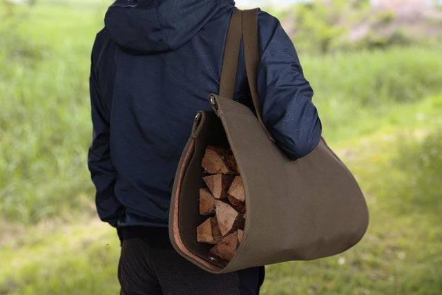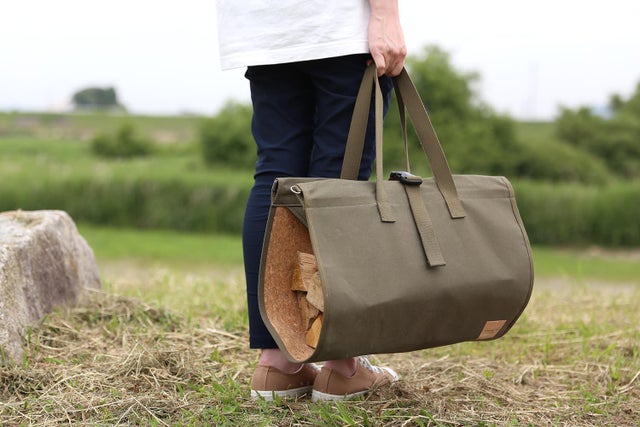 バッグに薪やキャンプ道具などをくるんで楽に運ぶことができます。