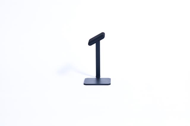 上下のシンプルなスクエアを、細線でつないだフォルムがアートな、腕時計置き。