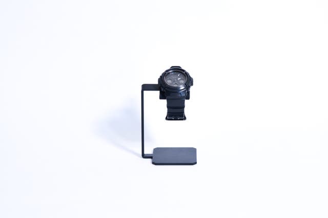 スッと1秒で時計を置けます。ベルトを外す手間がかからず、時計を横から置くだけなので、使いやすいデザインです。