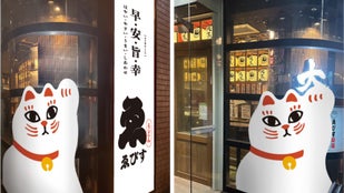 外のお客様から顔が見えないよう、大きな暖簾で招き猫がプライバシーを守っています。