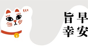 招き猫と、早安旨幸(はやい、やすい、うまい、しあわせ)をアピールする事で、いつでも誰でも来てください。を表現しています。