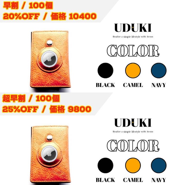 現在工場とデザイン・仕様を実現出来るよう、プロジェクトをスタッフ一同、誠心誠意進めてまいります。しかしながら、開発中の工程に置いて、デザイン・仕様が一部変更になる可能性もございます。 製造スケジュールについては、現在プロジェクト成功を想定した数で調整しておりますが、想定を上回る応援購入の申込みがあった場合、製造工場の都合や配送作業に伴う止むを得ない事情によりお届けが遅れる場合がございます。 上記のようにプロジェクトページに記載している内容に変更がある場合は、出来るだけ早く活動レポートなどで共有を行なっていく予定です。 ※応援購入の数が想定を上回った場合、製造工場やレザーの仕入れ状況などの都合等により出荷時期が遅れる場合がございます。 ※原則として、配送遅延に伴う応援購入のキャンセルはできませんが、リターン配送予定月から6ヵ月を超えた場合には、希望者に限りキャンセルにて対応させていただきます。 ※本プロジェクトを通して皆様から想定を上回る応援購入を頂き、現在進めている環境から量産体制を更に整えることができた場合、正規販売価格が販売予定価格より下がる可能性もございます。 ※発送時の手違いによる色間違い、または不良品以外での交換・返品はいたしかねます。 ※色目に関しては、お客様のご覧頂いているパソコンやスマートフォンによっても実際の商品と多少異なる場合がございますので予めご了承下さい。 ※デザイン、仕様、内容品は変更になる可能性がございます。 ※AirTagの詳しい仕様に関してはApple社のサイトをご参照下さい。 ※本製品にAirTag本体は付属しておりません。 ※Apple社の超広域テクノロジー「正確な場所を見つける」機能。詳しい仕様に関してはApple社のサイトをご参照下さい。 ※AirTagは、Apple Inc.の商標です。 スタッフ一同、誠心誠意プロジェクトを進めてまいります。 Makuakeの性質上、以上の注意点につきまして 予めご理解頂けますよう、何卒宜しくお願い致します。