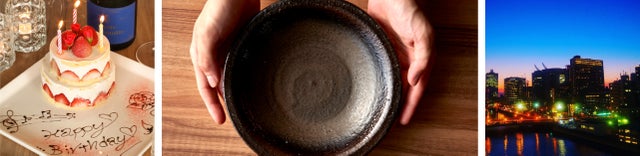 窓一面に広がる中之島の夜景と、ゆったりとした時間が流れる空間の中で