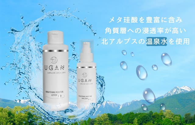 UGAN新ラインナップは透明感と年齢に応じたケアに特化したローション、セラム、エマルジョンの3つです。