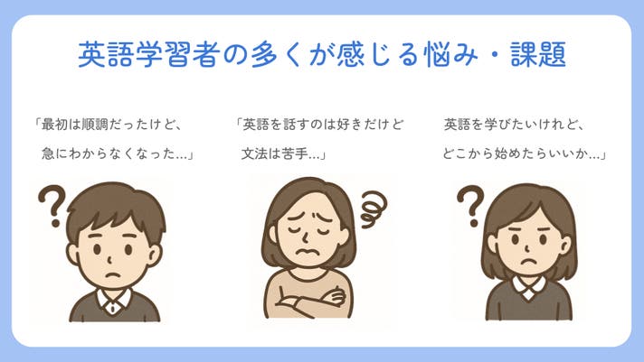 今回本プロジェクトを企画した理由は、多くの英語学習者が感じている次のような悩みに対して、新しい学習方法を提案したいと考えたからです。