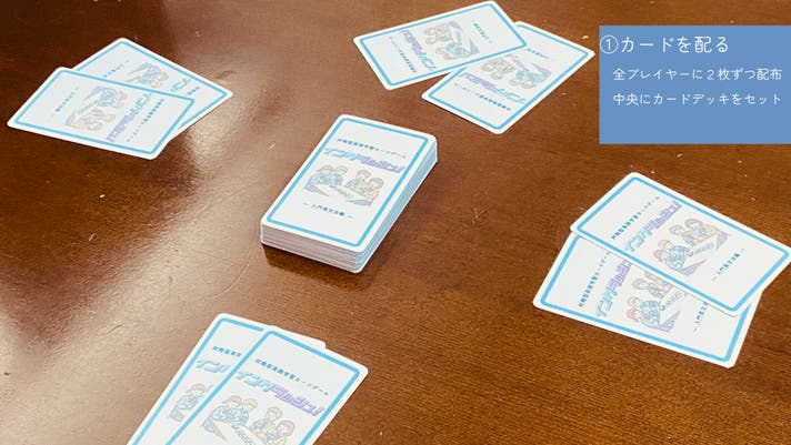 ① まず全プレイヤーに2枚ずつカードを配布します。