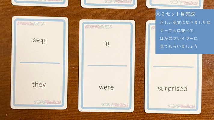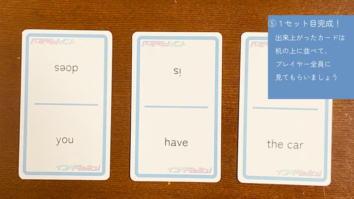 ⑥ 正しい英文を2つ先に完成させたプレイヤーが勝者となります。