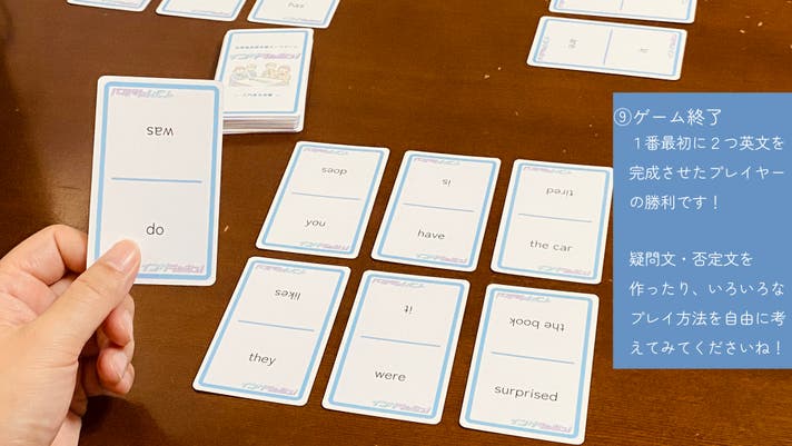 - 作れる英文は250種類以上!カードを並べ替えながら英文法を楽しく身につけられる!