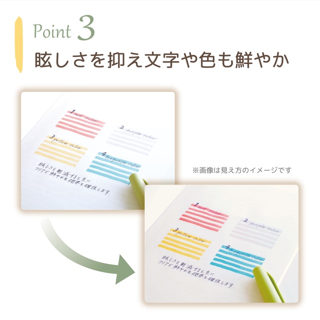 散乱する性質を持つ青色光や、眩しいと感じる黄色光をピンポイントで吸収する事により眩しさが軽減されると共に、色の違いを感じやすい赤や青緑を優先的に見せる事でクリアで鮮やかな視界を確保します。