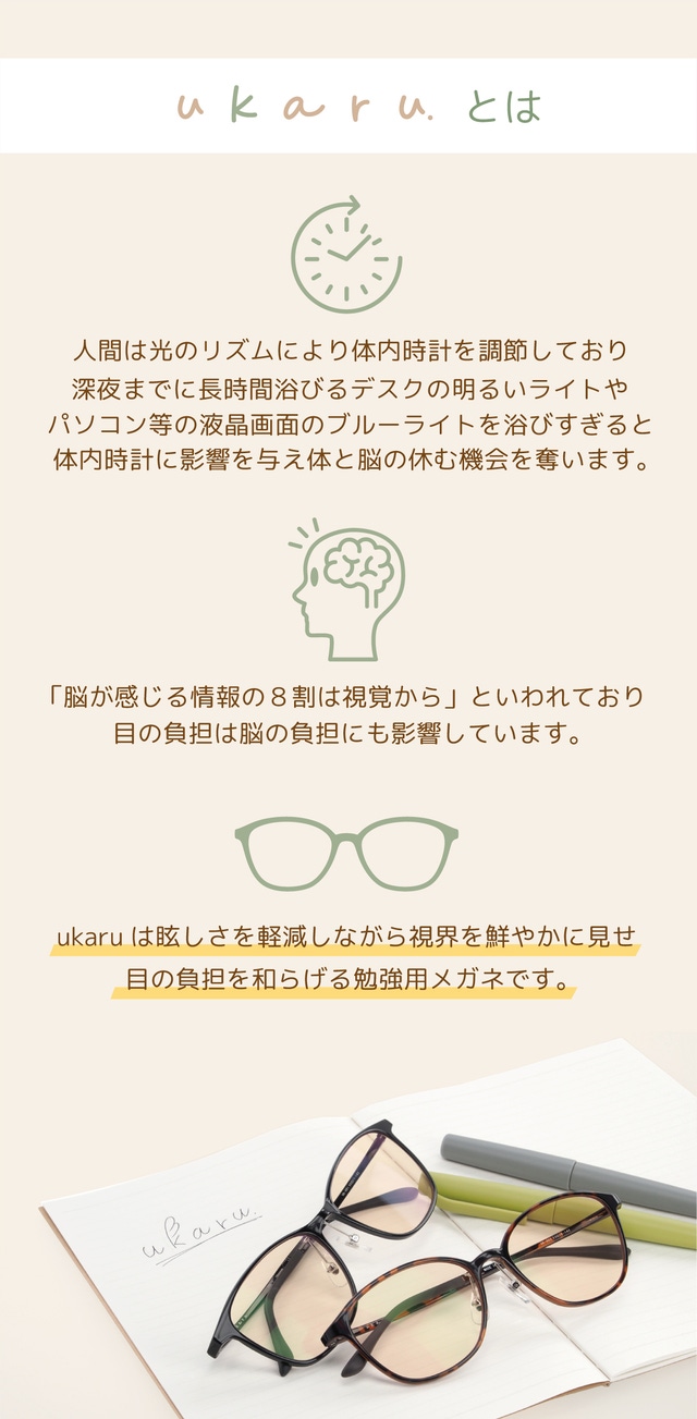 目に優しくとっても軽い 勉強用メガネ【 優軽「ukaru」】が、皆様のより快適なライフスタイルを描くアイテムとしてお役に立てられれば幸いです。