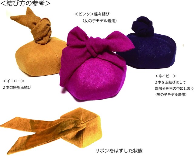 リボンの色、本体の色、サイズの組み合わせが選べるベレ-帽