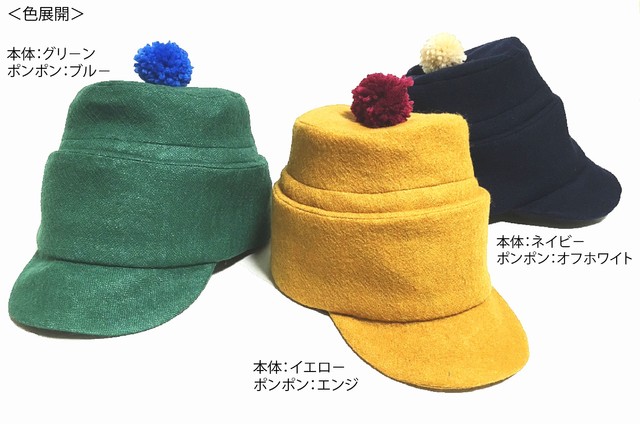 注意:ポンポン部分は、ツバ部分と同色の仕上げになります。