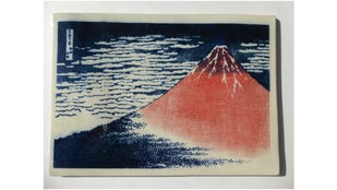 「凱風快晴」(がいふうかいせい) 通常「赤富士」(あかふじ)とも呼ばれる。原寸25.72 cm × 38 cm (10.13 in × 15 in) 葛飾 北斎(かつしか ほくさい)江戸時代後期の浮世絵師。代表作 冨嶽三十六景(ふがくさんじゅうろっけい) 全46図。大判。