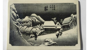 蒲原 夜之雪(かんばら よるのゆき) 切手の絵柄にもなった有名な浮世絵。原寸 22.6×34.4cm 歌川 広重(うたがわ ひろしげ) 江戸時代後期の浮世絵師。代表作「東海道五十三次」(とうかいどう53つぎ)全55図。大判。欧米では「ジャパンブルー」、フェルメール・ブルー(ラピスラズリ)になぞらえて「ヒロシゲブルー」とも呼ばれる。 陶板画 A4版 サイズ・・・・17cm × 25cm 陶板画 A3版 サイズ・・・・25cm × 37cm