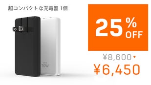 - 最大70W出力、2つのUSB-Cポート搭載!2台デバイス同時高速充電可能!