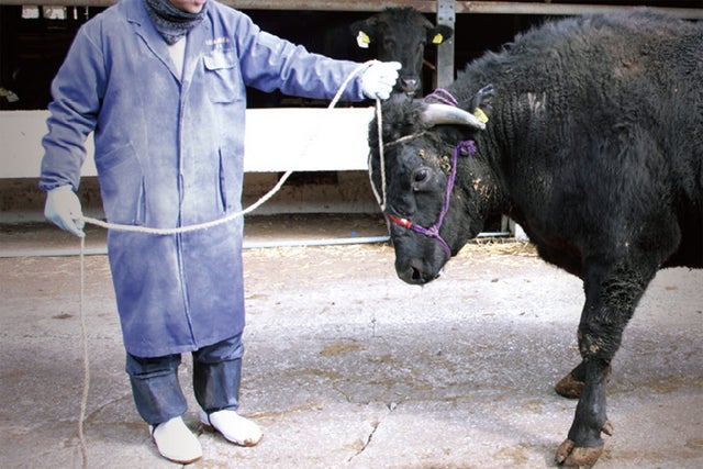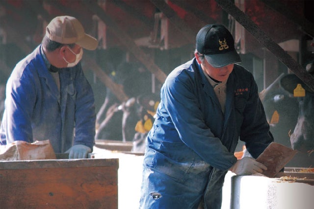 当牧場では、職員1人が200〜300頭ほどの牛を担当し、餌やりから普段の状態まで愛情をもって育て、見守っています。そのため、生体・枝肉共に県の平均の数値を上回る上質な黒毛和牛を出荷しております