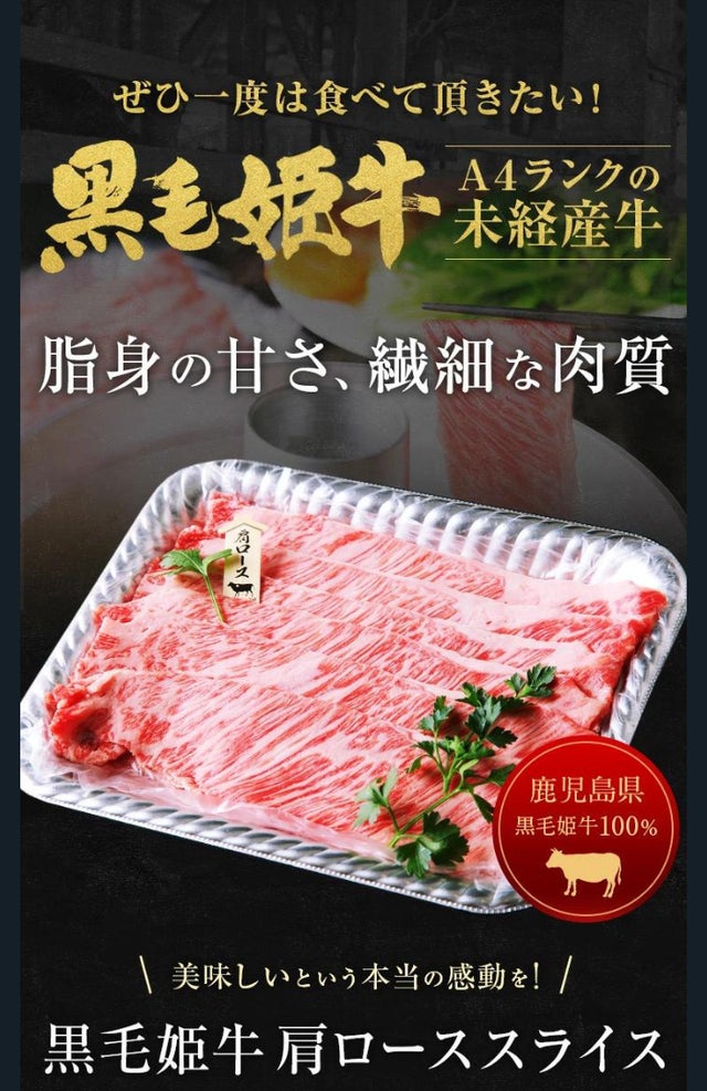 【鹿児島県産黒毛姫牛 肩ローススライス(冷凍)】