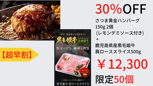 【超早割】限定50個 30%OFF さつま黄金ハンバーグ+黒毛姫牛 肩ロース