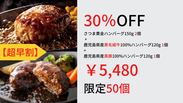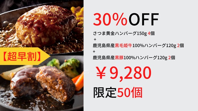 【超早割】限定50個 30%OFF さつま黄金ハンバーグ+ハンバーグ2種