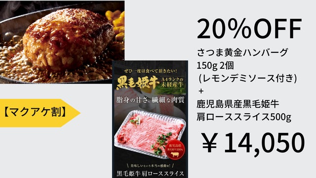 【マクアケ割】20%OFF さつま黄金ハンバーグ+黒毛姫牛 肩ロース