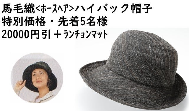 5、【早割り】【Makuake特価】 ハイバック帽 馬毛織&限定ランチョンマット付き