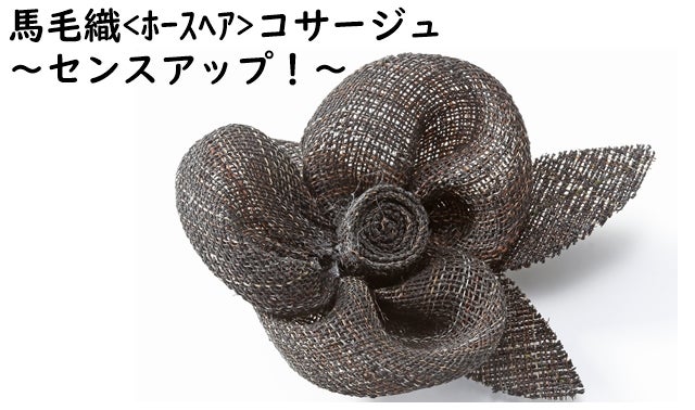 馬毛織コサージュはシンプルなデザインのうえ、機能性が高く、帽子に付けてエレガントに、外してカジュアルに、幅広いシーンで活躍します。