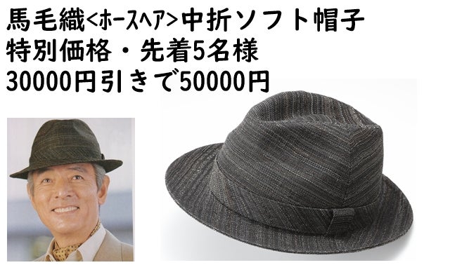 3、【早割り】【Makuake特価・20000円OFF】 中折れソフト帽子 馬毛織