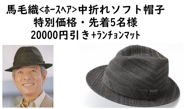 1、【早割り】【Makuake特価・30000円OFF】 中折れソフト帽子 馬毛織