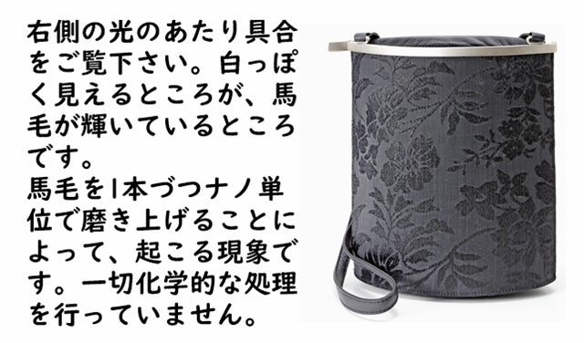 このバッチは、艷やかで弾力ある馬毛織を丹念にしかも、100%使用したもの。