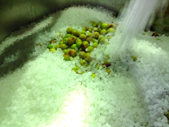 樹上完熟し収穫した南高梅は選果機にかけられ大きい梅は梅酒に小さいサイズは梅干に漬け込みます。