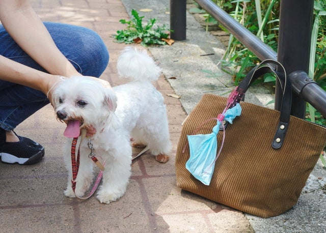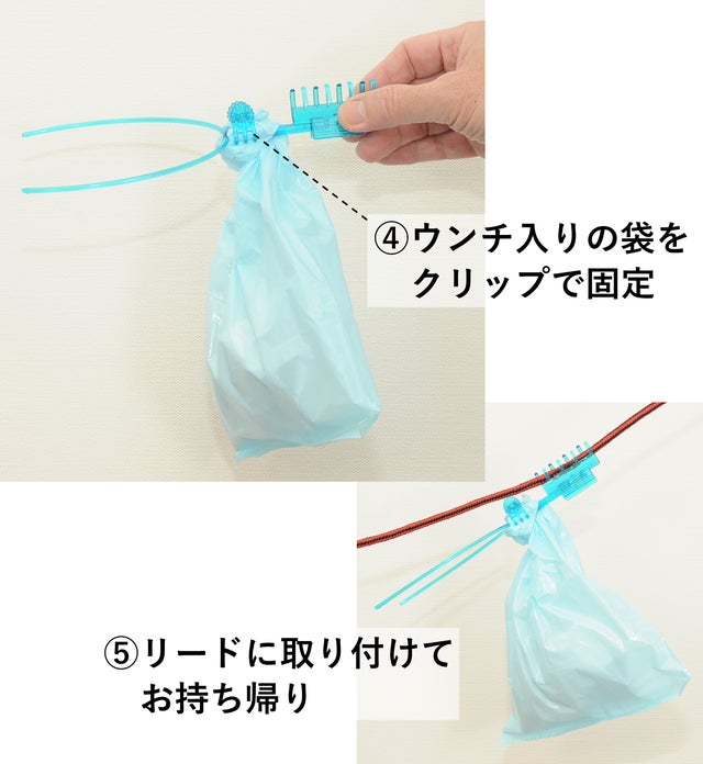 ウンチ入りの袋は、リードに取り付けてお持ち帰りできます。