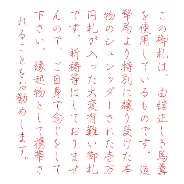 【金は天下の回り物】【お金が天から降ってくる】ように本物のお金が舞う御札。