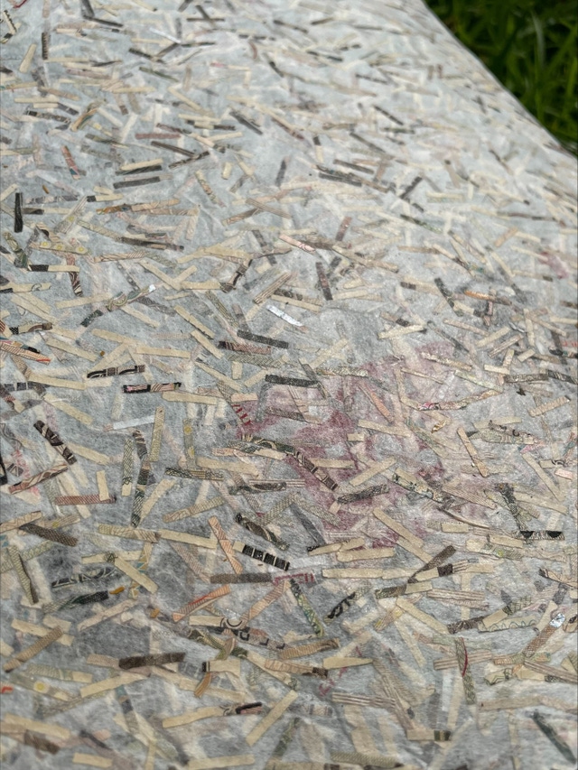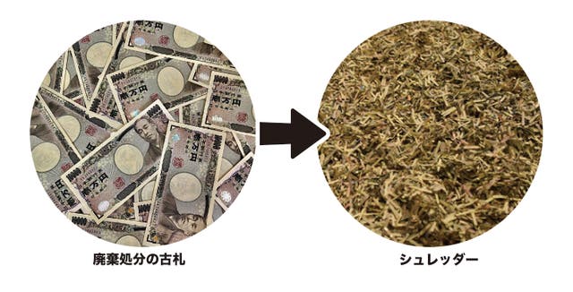 残りの1%は、本物の一万円札(シュレッダーくず)を使用しています。