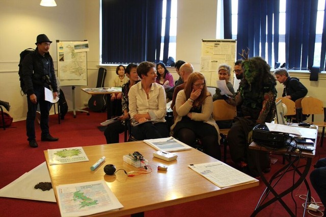 この『赤い竜と土の旅人』は、2014年8月、イギリス・ウェールズ国立劇場の日本人アーティスト招聘プログラムに私たち地下空港が選抜され、メンバー3人が渡英し、新作のための調査&発表をさせて頂いたことで生まれました。
