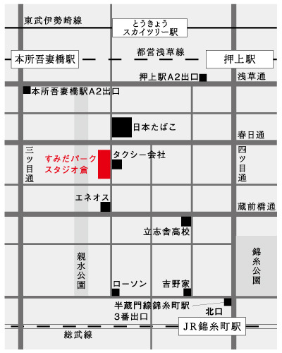東武伊勢崎線 業平橋駅より徒歩12分/都営浅草線 本所吾妻橋駅(A2出口)より徒歩13分/