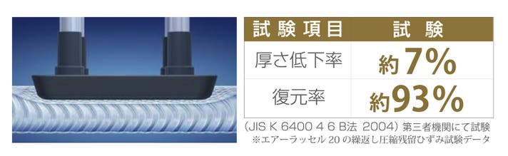 8万回50%圧縮試験にて復元率約93%をキープ。