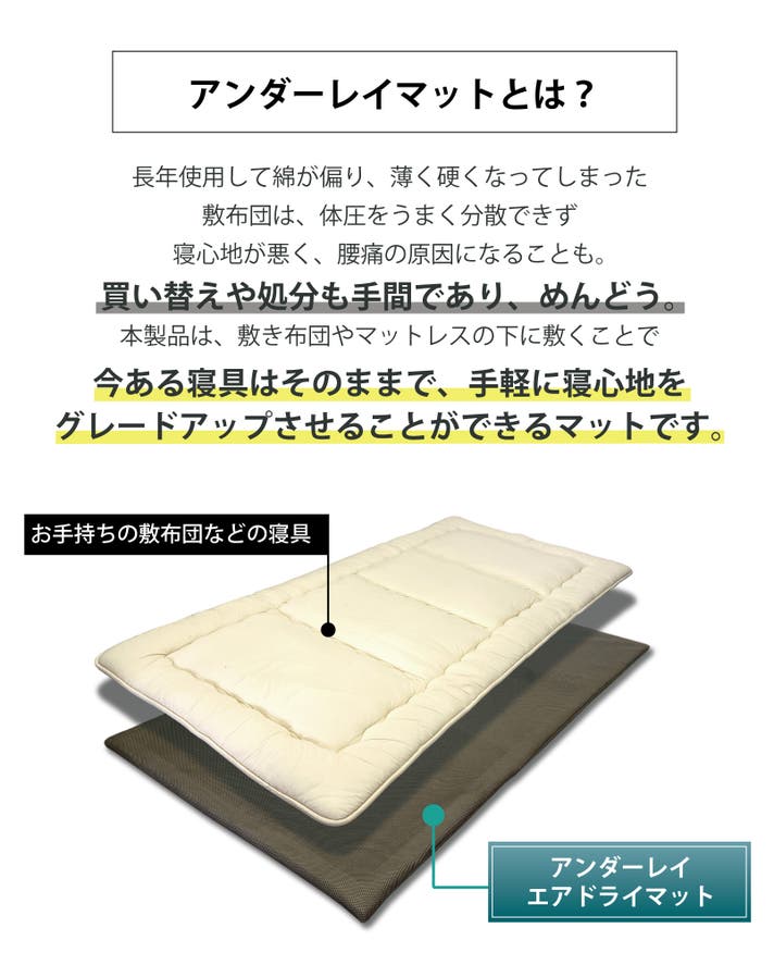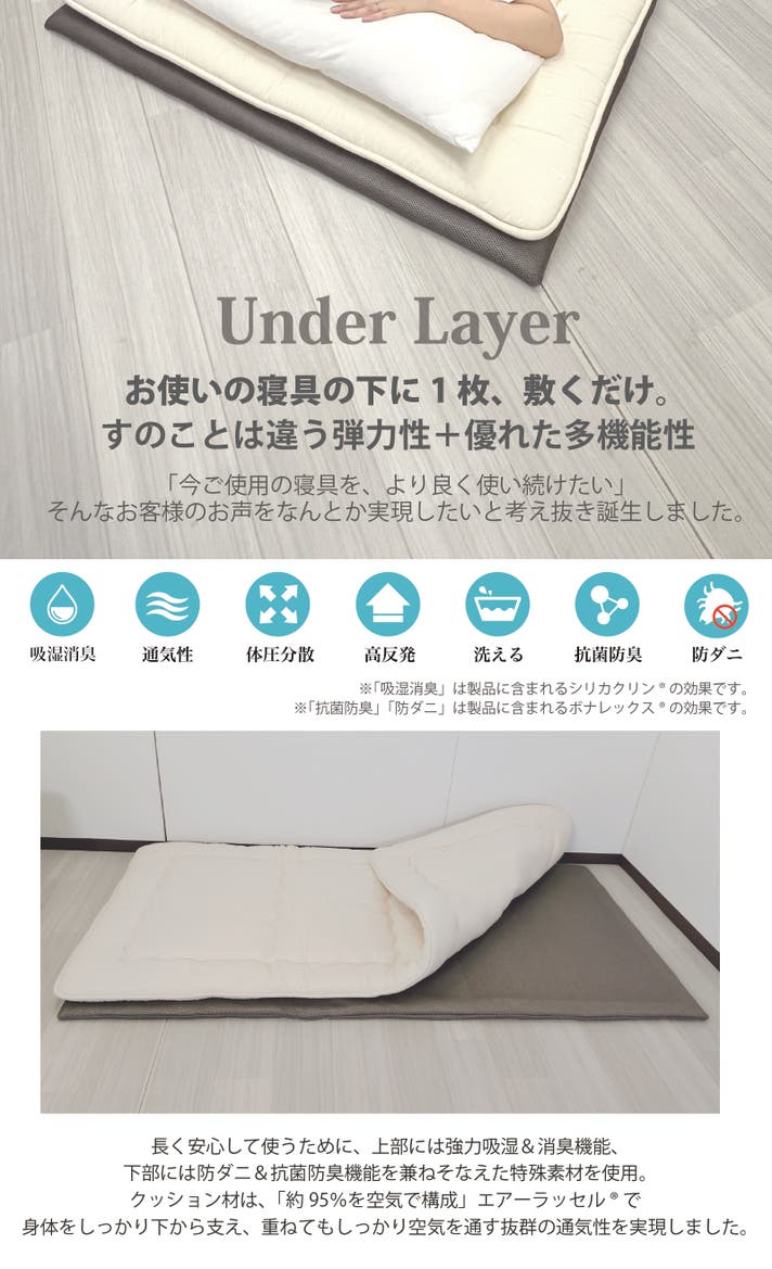 - 今お使いの寝具の下に敷くだけ!寝心地も睡眠環境もグレードアップ!